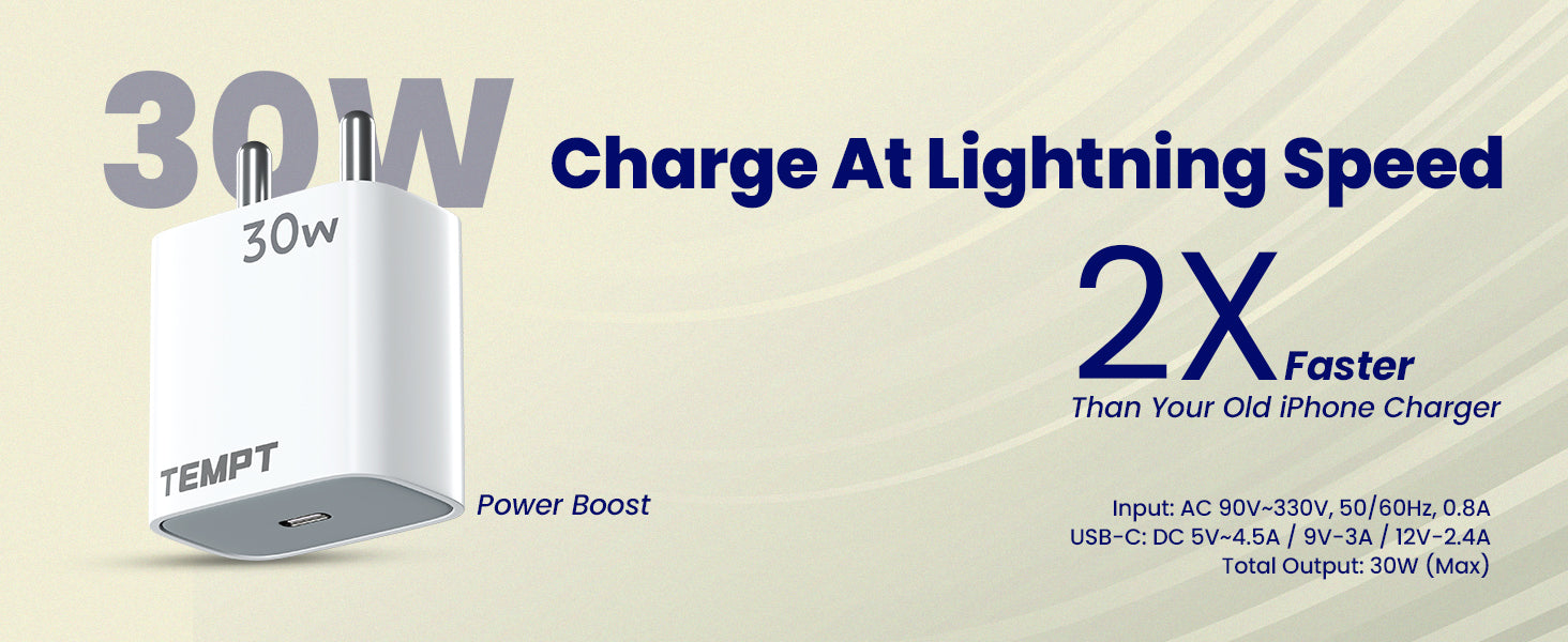 · 30W Fast Charging: Power up your devices at lightning speed — 2X faster than your old iPhone charger