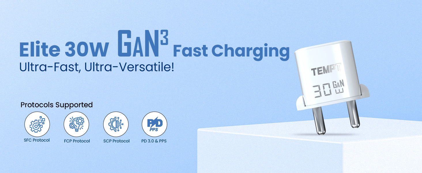 Experience powerful, efficient charging with the Elite 30W GaN³ Charger, built with the latest GaN³ technology for 3X faster charging than ordinary chargers.