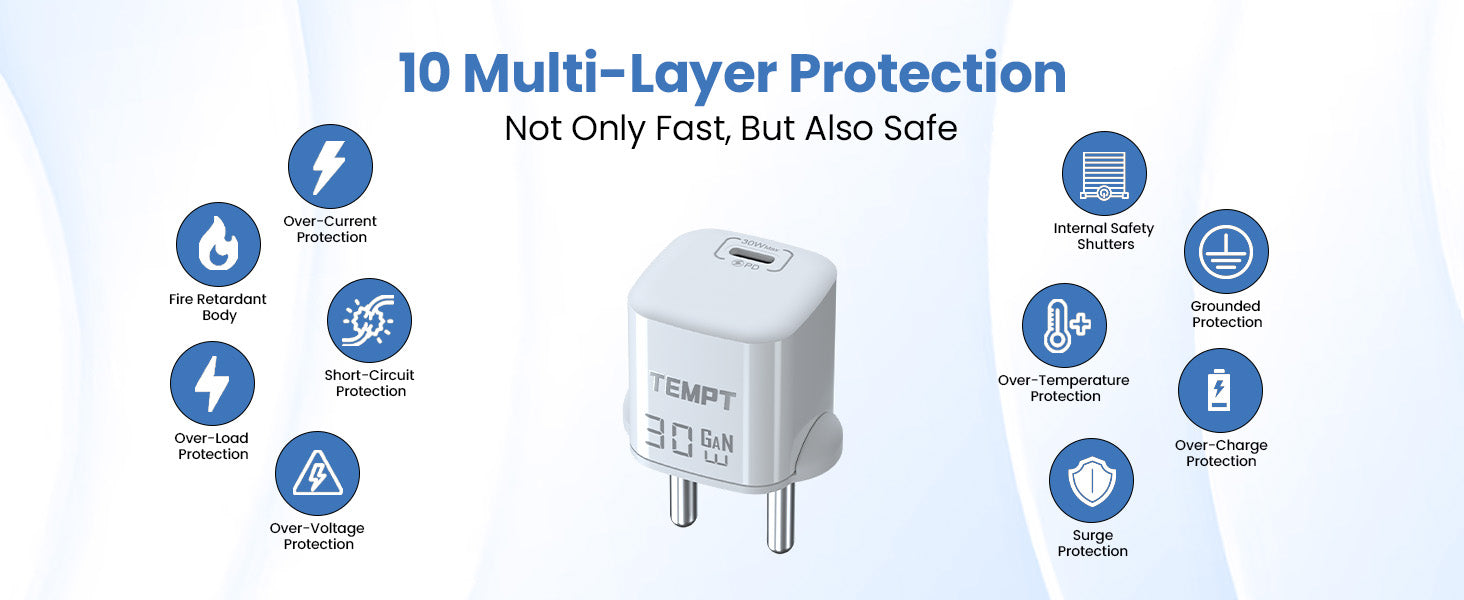 Smart & Safe: Multi-layer protections including over-current, over-voltage, over-temperature, short-circuit, and fire-retardant body.
