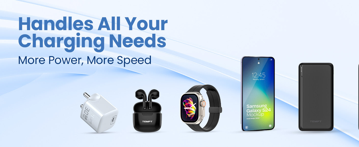 Multi-Device Compatibility: Works with smartphones, tablets, earbuds, smartwatches, and USB-C devices.