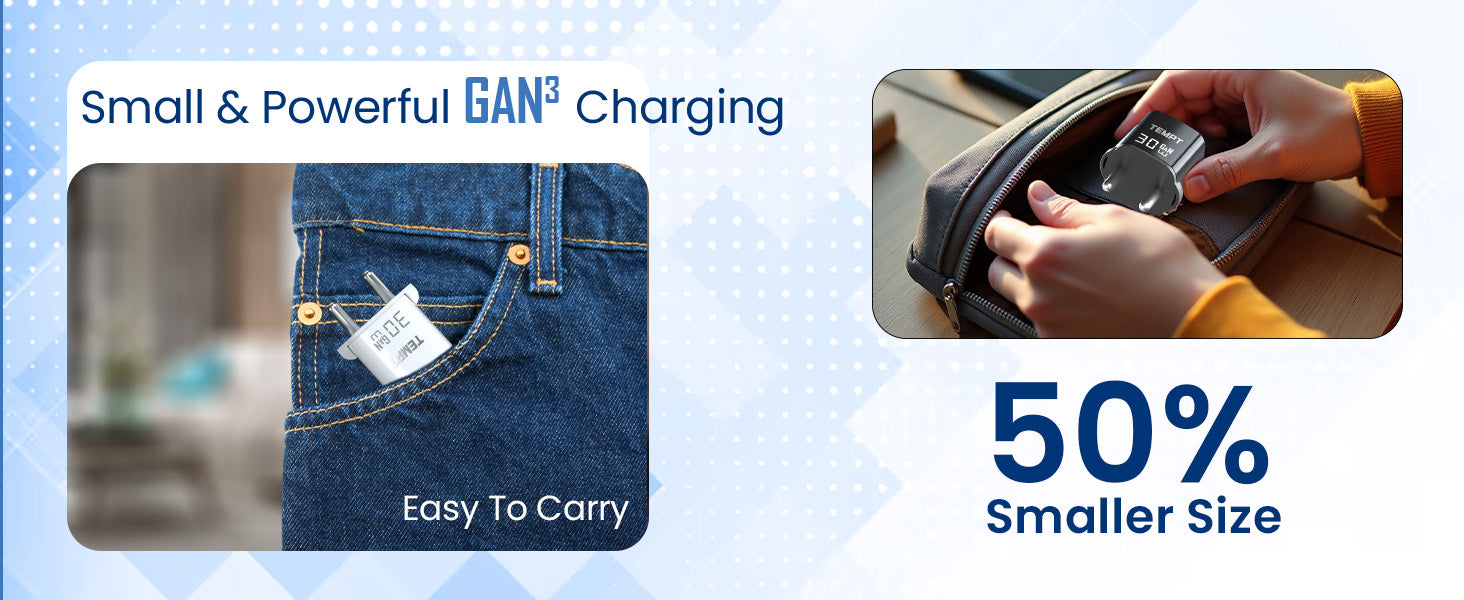 Compact & Lightweight: 50% smaller than standard chargers, weighing only 41g.