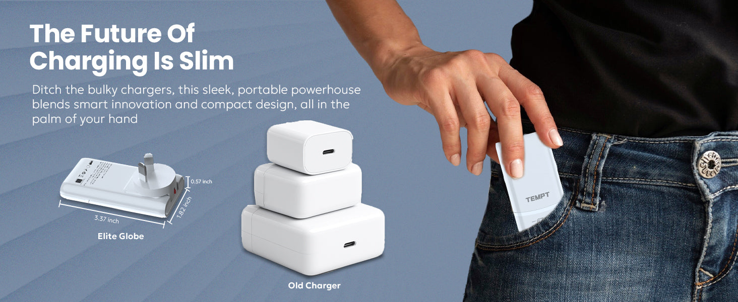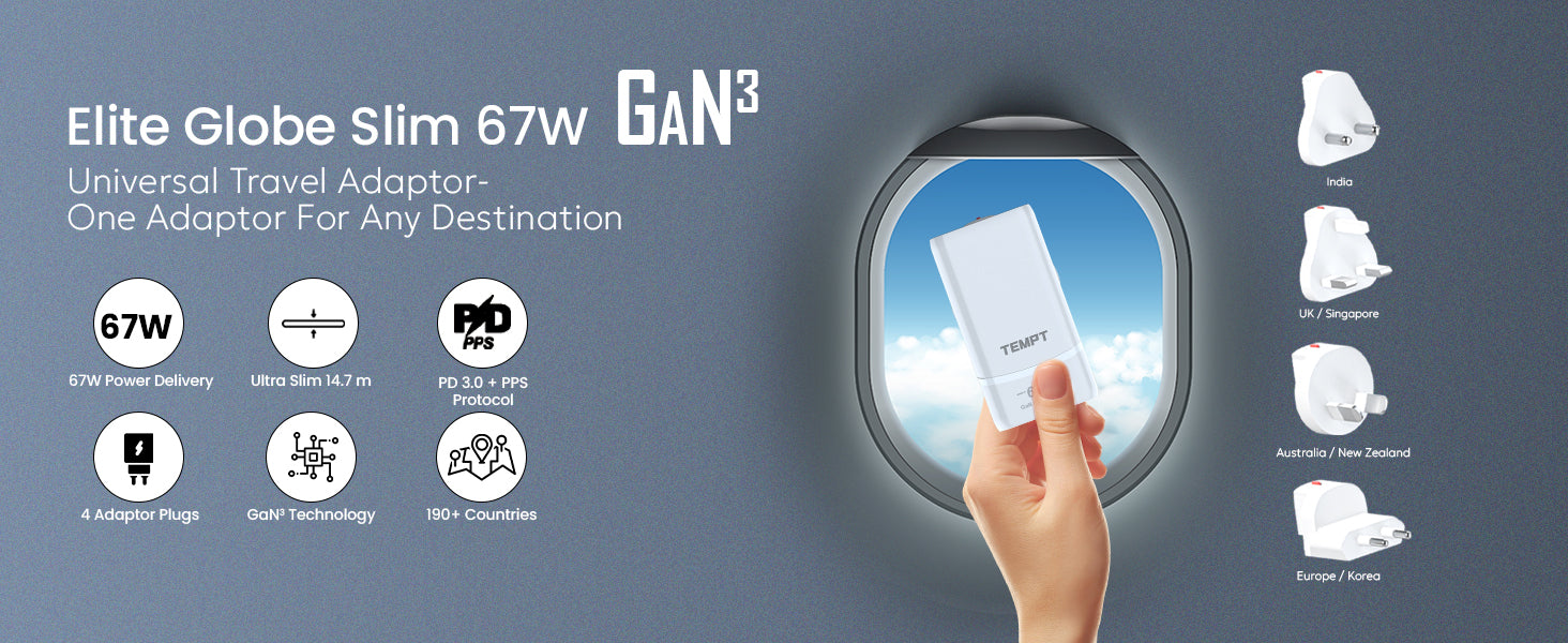 Elite Globe Slim 67W GaN3 Charger – Ultra Compact Fast Charging Adapter – Temptindia