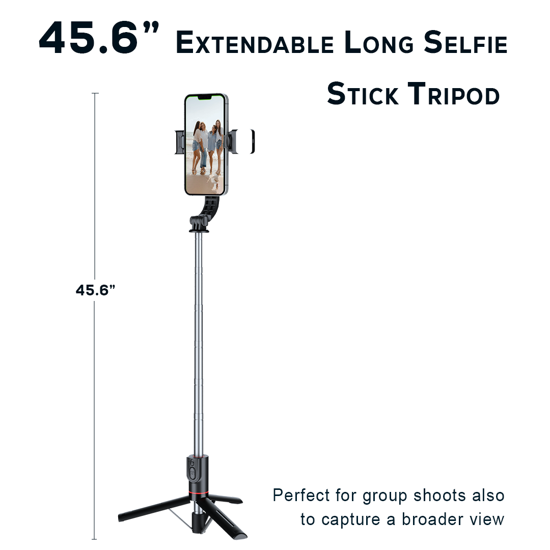 Capture expansive views and stunning selfies with our selfie stick, extending up to an impressive 45.6 inches for maximum reach. Perfect for group shots, wide-angle landscapes, or creative perspectives, this extendable design ensures you never miss the perfect moment.