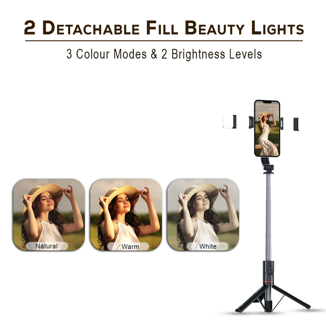 Illuminate your selfies with our selfie stick, featuring a detachable light that enhances your photos and videos. Equipped with three adjustable color modes, you can easily tailor the lighting to match your surroundings, ensuring your face always looks flawless. Additionally, the two brightness levels allow you to fine-tune the perfect light, whether you're shooting indoors, outdoors, or in low-light conditions.