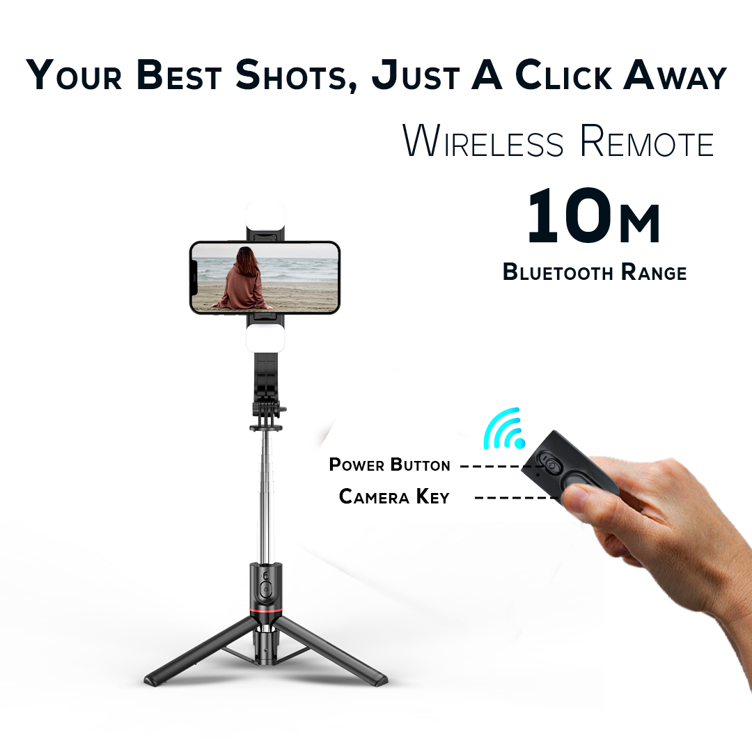 Capture the perfect shot effortlessly with our selfie stick, featuring a wireless remote with an impressive 10-meter Bluetooth range. Whether you're posing solo or in a group, this remote allows you to take photos or videos from a distance, providing ultimate convenience and flexibility.