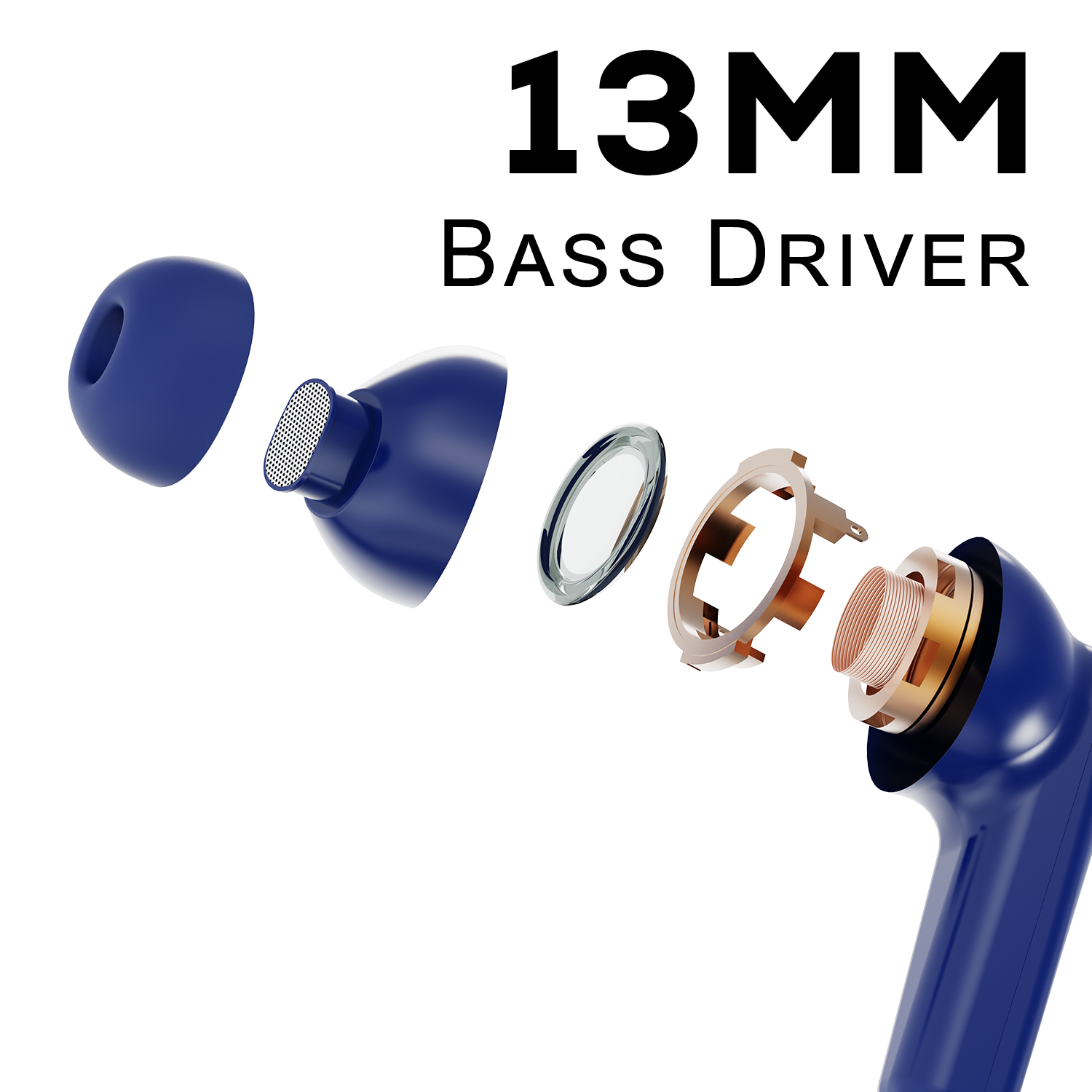 These earbuds use 13 mm bass drivers and a deep frequency amplifier to deliver powerful bass, clear mids, and crisp highs for an immersive audio experience.