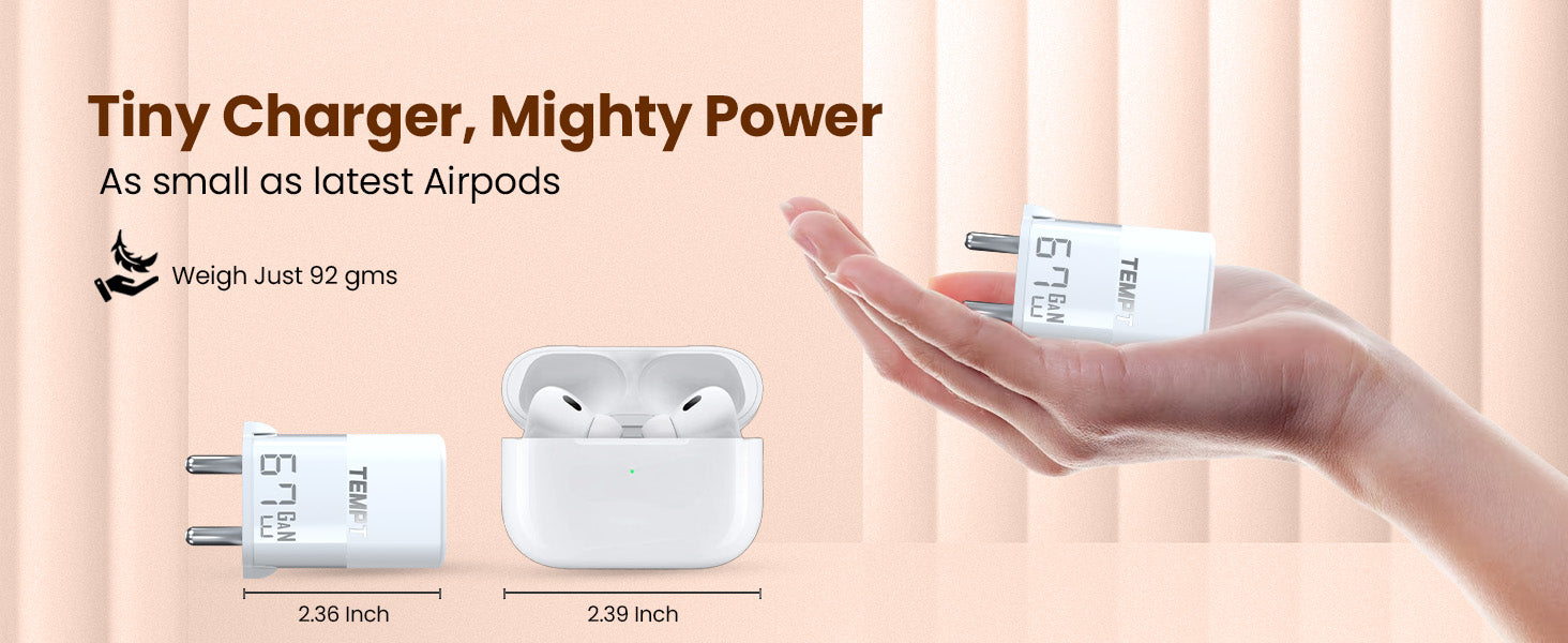 Compact & Travel-Ready: 50% smaller than regular chargers, weighs only 72g.