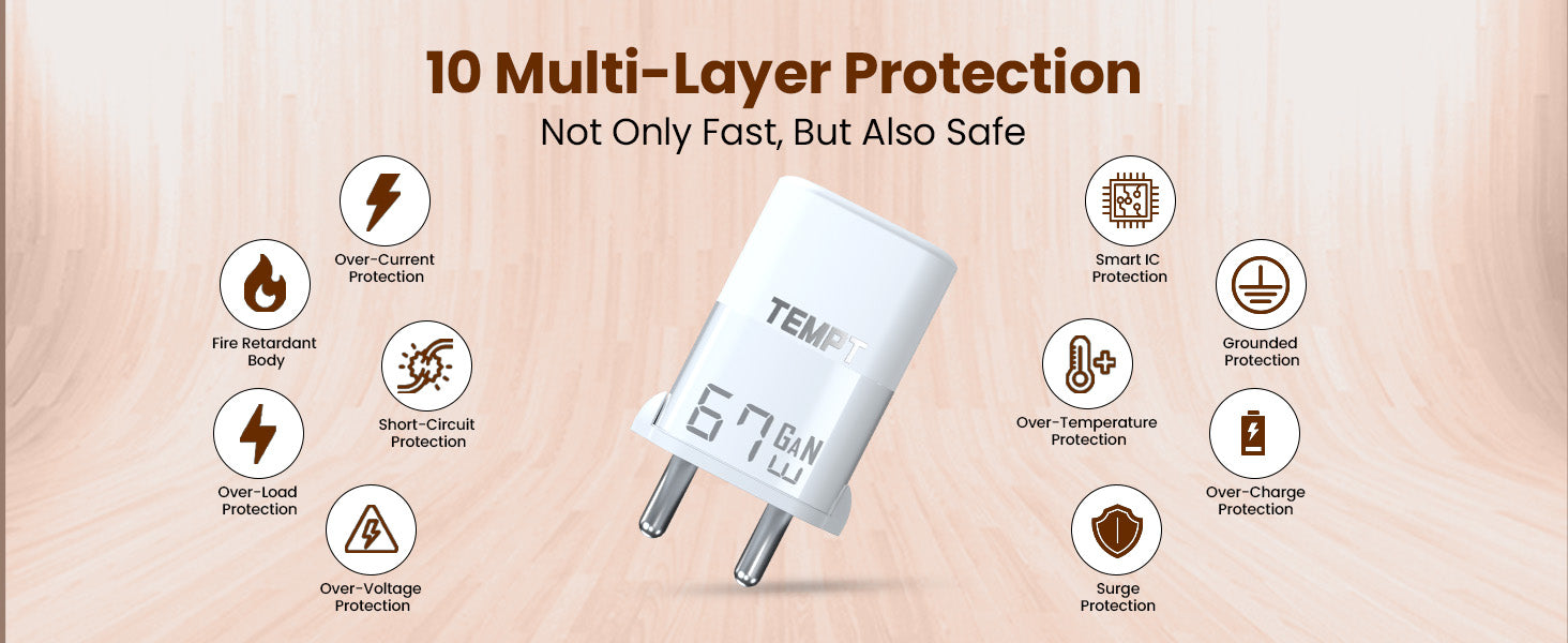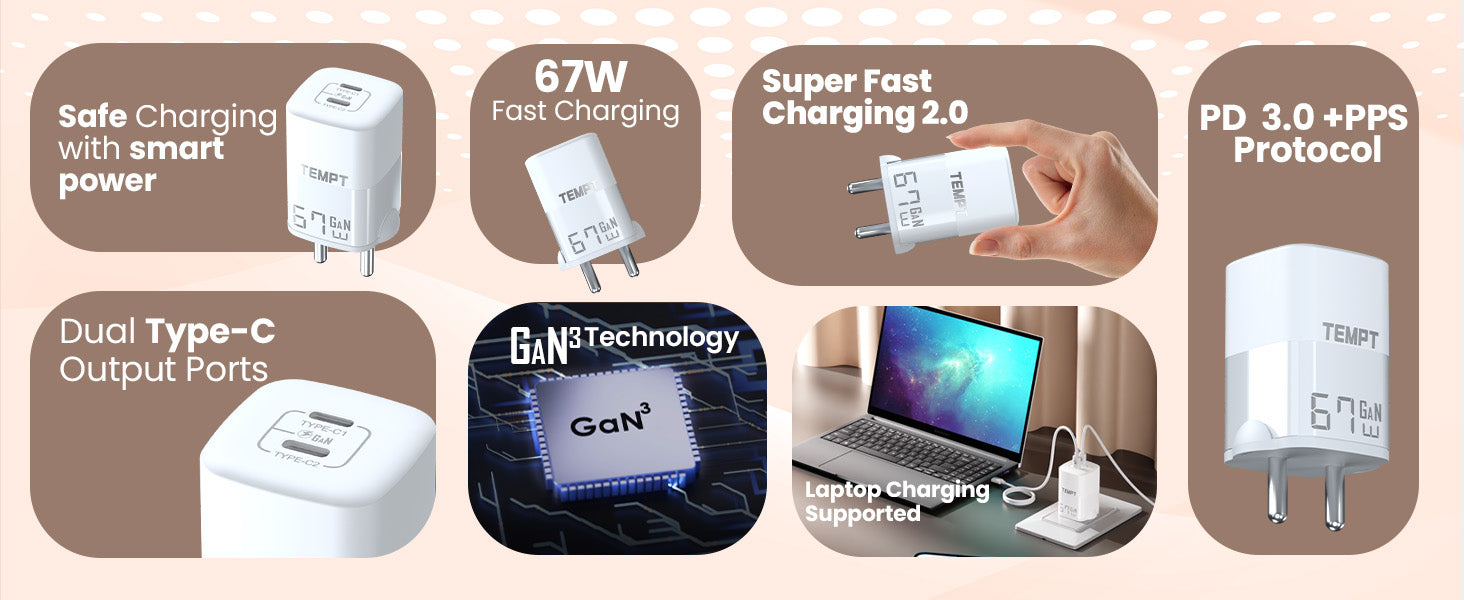 Advanced GaN³ Technology: Efficient, low-heat, durable, and safe charging.
