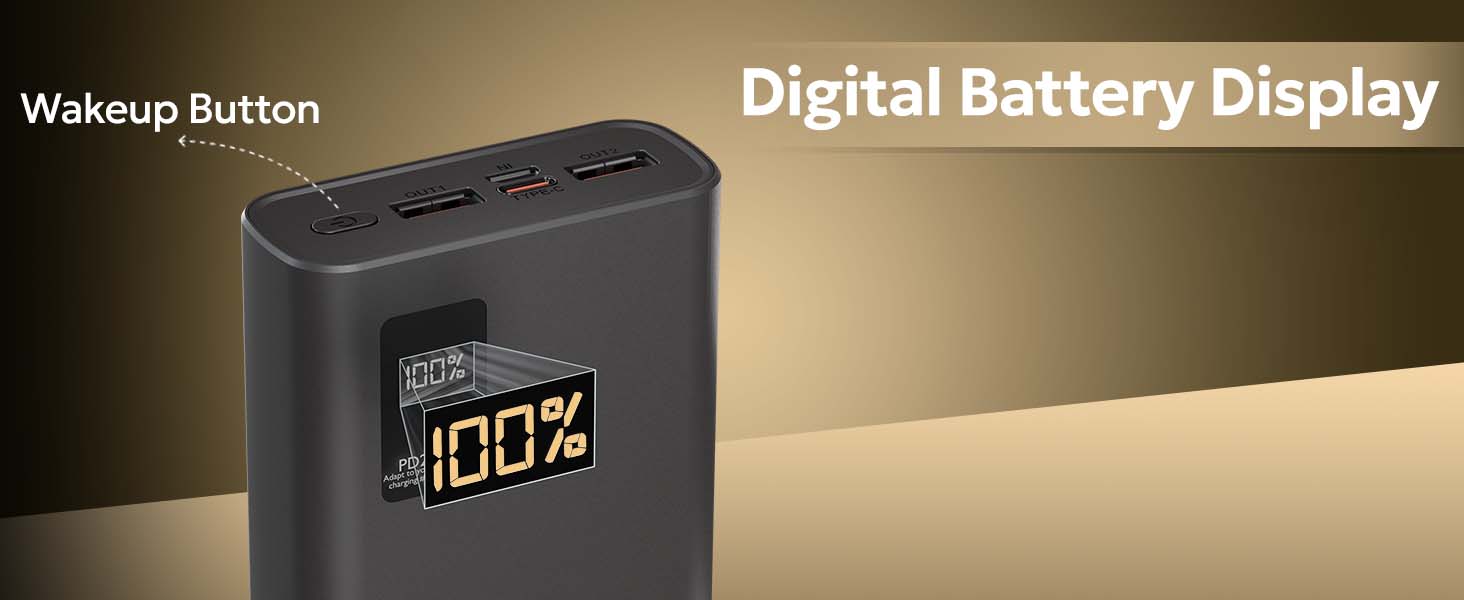 - Smart digital LED display shows exact battery percentage from 0–100%.