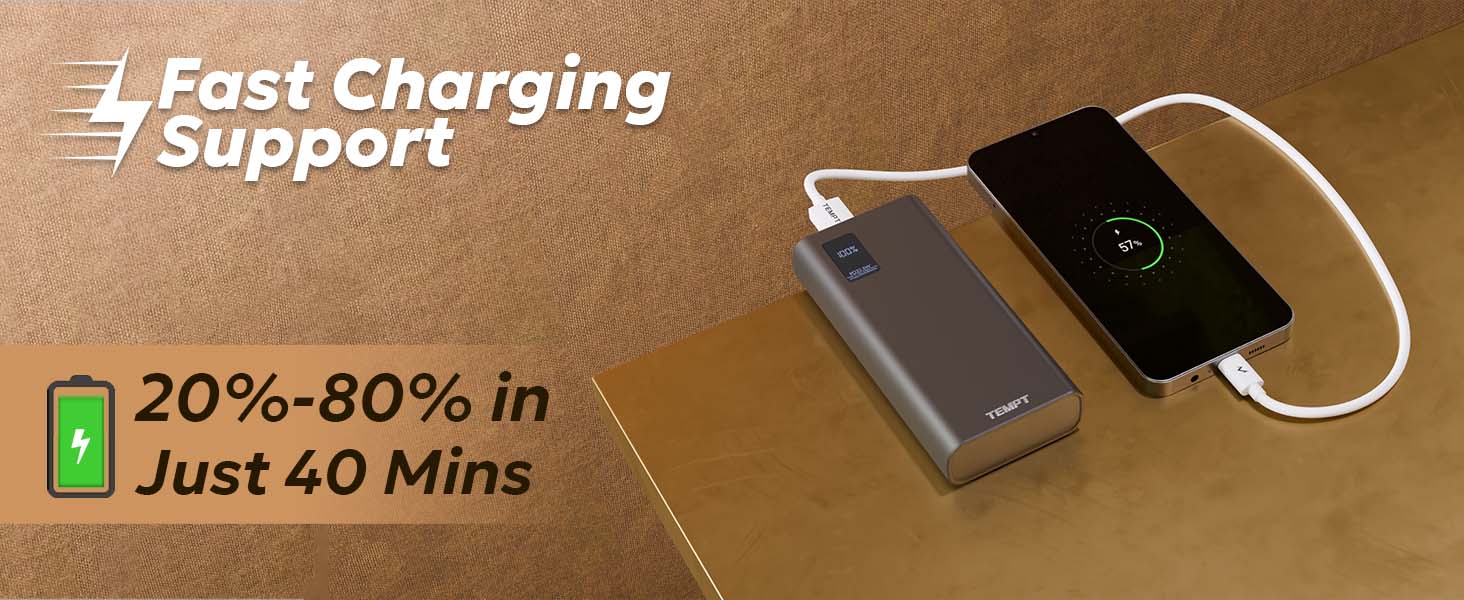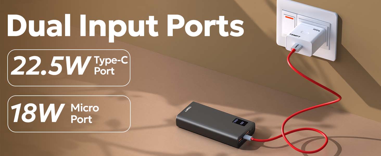 - 22.5W super fast charging ensures quick power recovery with minimal downtime.