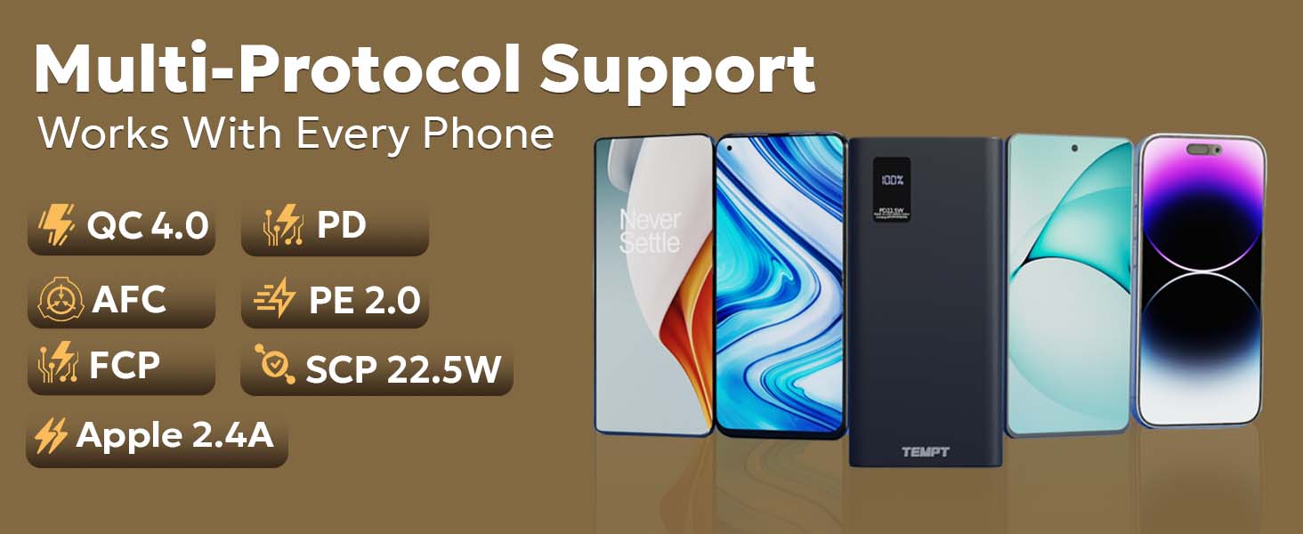 - Supports PD 3.0, QC 3.0, SCP, AFC, FCP