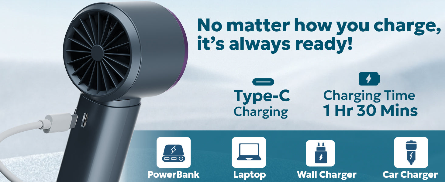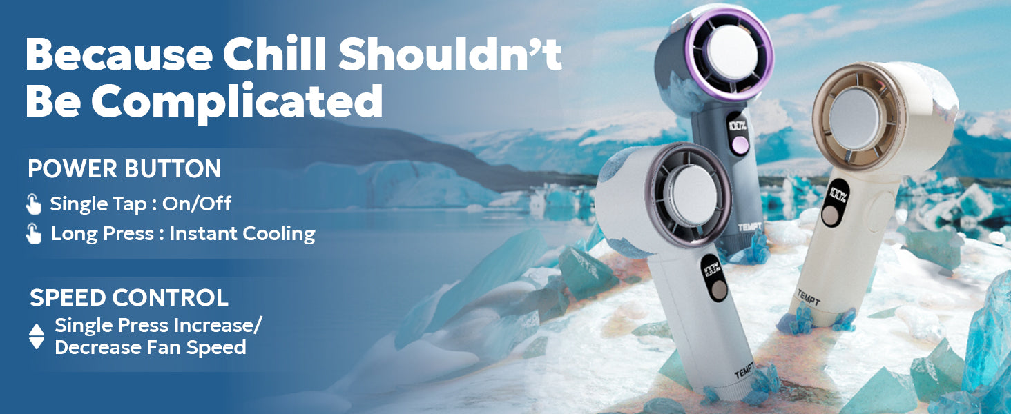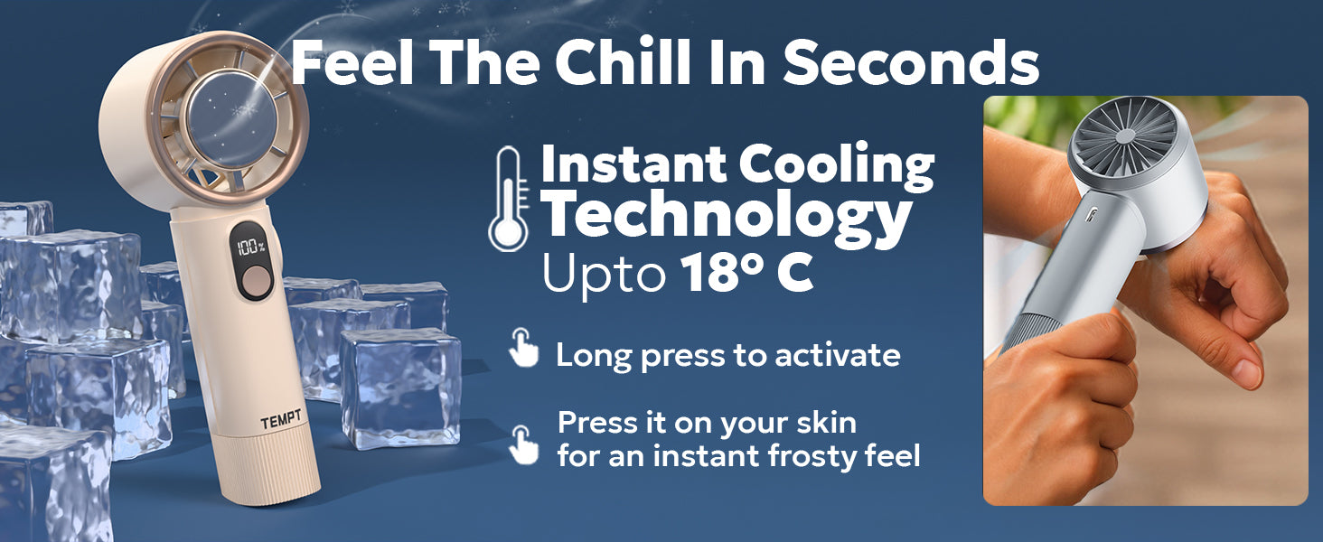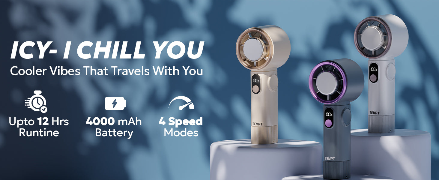 ICY Handheld Fan with Instant Cooling | 4000mAh, 12H Runtime, Type-C – Temptindia