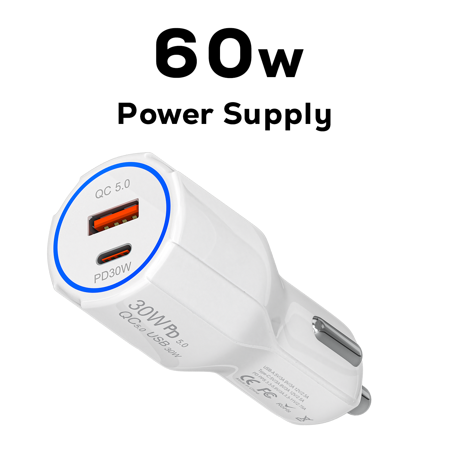 Power up your devices quickly and efficiently with our car charger, featuring a maximum power output of 60W for fast and reliable charging on the go. Engineered for optimal efficiency, this charger ensures your devices receive the perfect amount of power without compromising speed or safety.