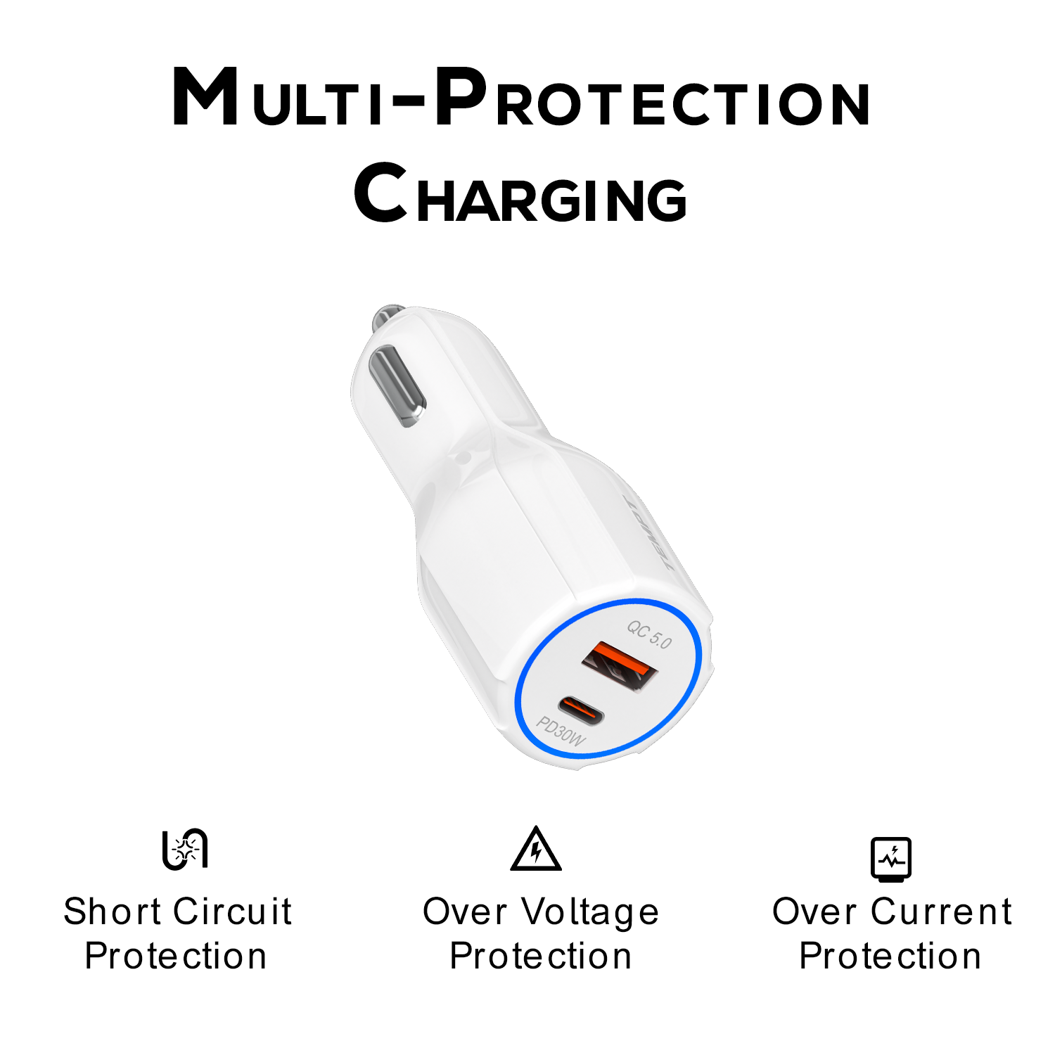 Ensure safe and efficient charging with our car charger, equipped with multiple protection features for your peace of mind. Designed with over-current, over-voltage, short-circuit, and temperature protection, this charger safeguards both your devices and vehicle. Whether you're charging smartphones, tablets, or other electronics.