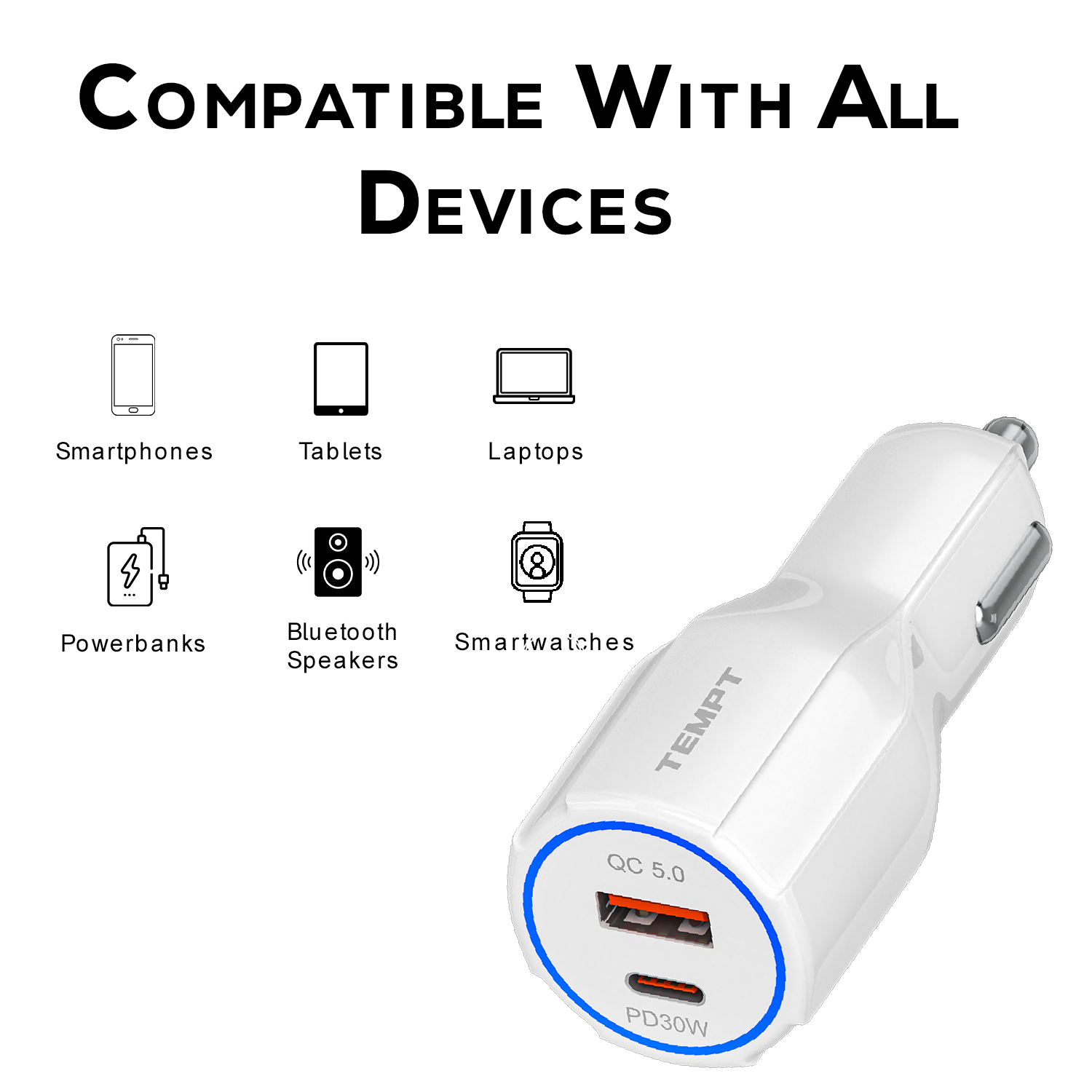 Experience the power of fast charging with our Car Charger featuring a 60W output and Quick Charge Power Delivery (QCPD) dual ports. Engineered for lightning-fast charging, this charger ensures your devices are powered up in no time, so you can stay connected and charged on the go. With dual ports, you can charge two devices simultaneously, making it perfect for both personal and professional use.